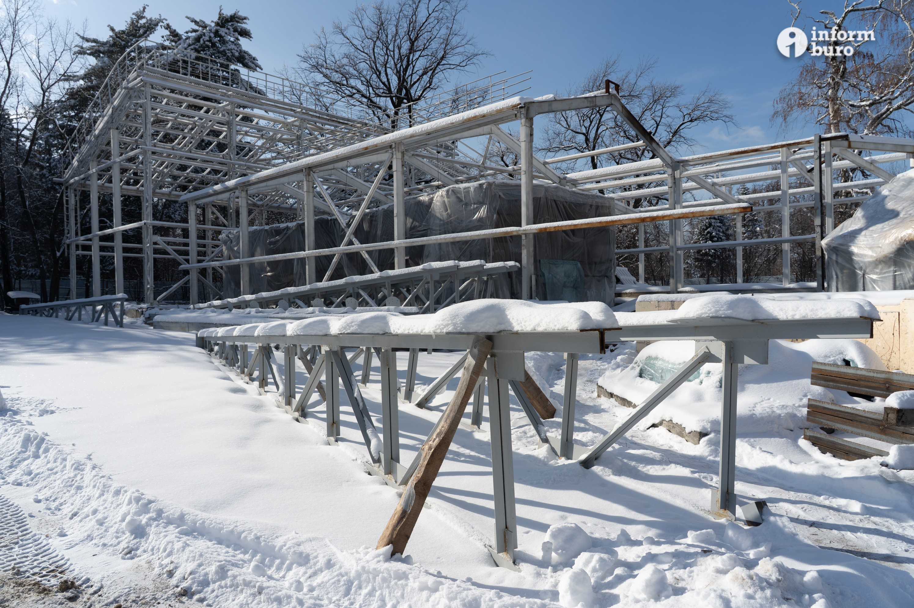 И вот уже четвёртую зиму подряд оранжерея представляет собой весьма удручающее зрелище. Голые металлические каркасы укутаны плёнкой. Однако основная проблема заключается не в том, что вид оранжереи не радует глаз посетителей. За жизнь находящихся в ней экзотических растений сотрудники Института ботаники и фитоинтродукции с наступлением холодов ведут настоящую борьбу.